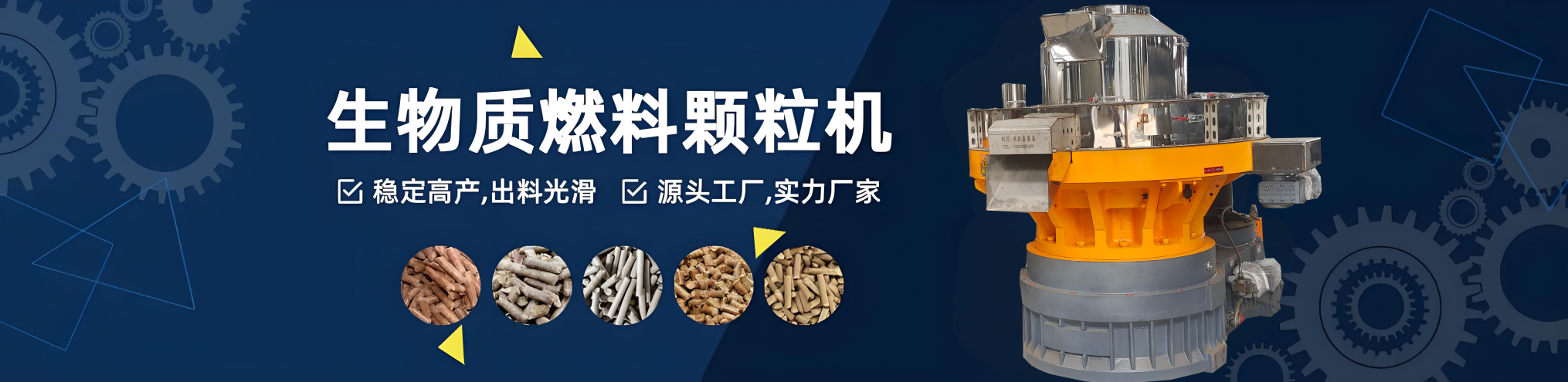 答:常規生物質顆粒設備生產線由4個部分組成:粉碎機+烘干機+制粒機+包裝機...